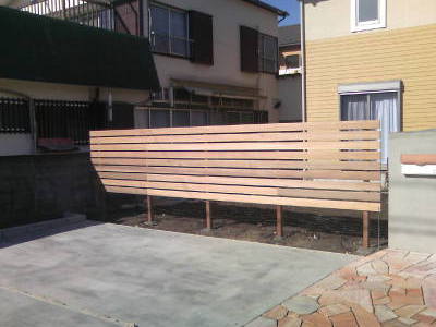 ラチスパネルでの施工 (横浜市旭区) イペ(オールナット色塗装品) ※工事付き参考価格:\120,000 |