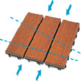 各フロアー材は目地にそって、100mm単位で簡単に切断できます。また、ノコギリを使えば斜めのカットも可能ですので、きめ細かく現場調整ができます。