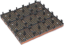 パネル一体型のベース材は、ソフトタッチのポリエチレン樹脂製。ベランダの床を傷めず、足音が響かないので階下に迷惑をかけません。